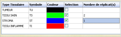 Vous pouvez tout aussi simplement définir les différents types de tissu – tumeur, tissu normal, etc…- que vous allez prélever, le nombre de répliquats et l’organisation ordonnée ou aléatoire dans le tissue array pour notamment réduire l’impact des effets de bord. Un scénario peut être défini sur chaque spécimen ou un même et unique scénario appliqué à l’ensemble des spécimens.
